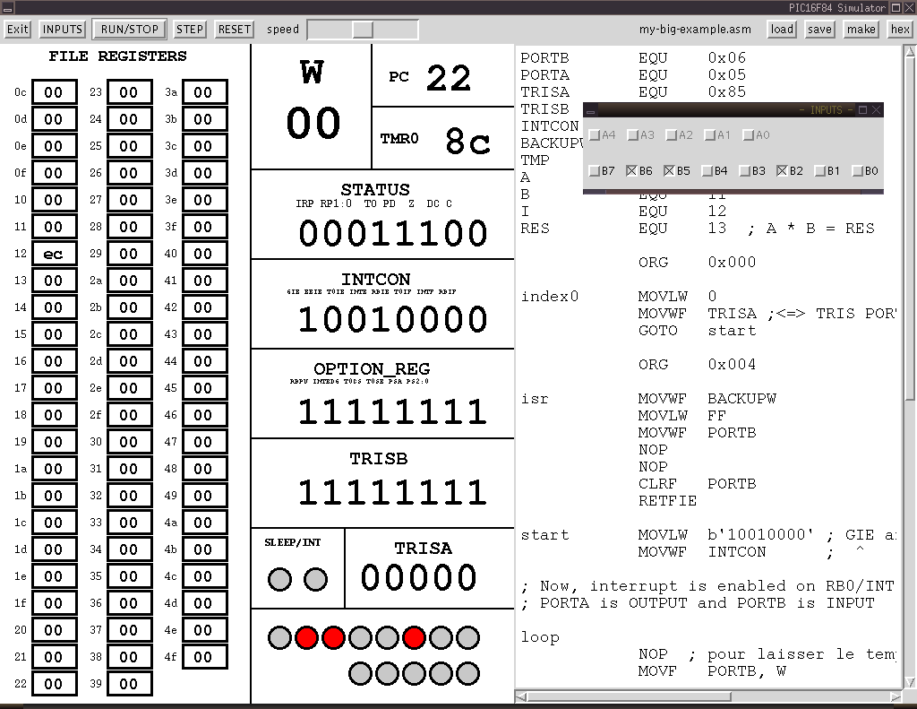 PIC16F8x simulator: