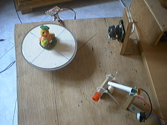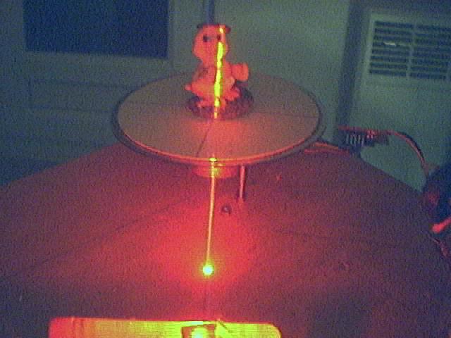 More pictures: laser diode in action, laser with its cone used to reduce light diffusion, view of all the scanner with the duck on it.